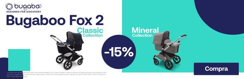 ¡Sí sí, ahora podéis disfrutar de un Bugaboo Fox2 colección Mineral o colección Classic con un 15% de descuento desde el 01 de Mayo hasta el 14 de Junio!