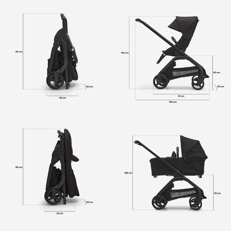 Plegado con sola pieza con capazo incluido 32 x 52 x 90 cm.