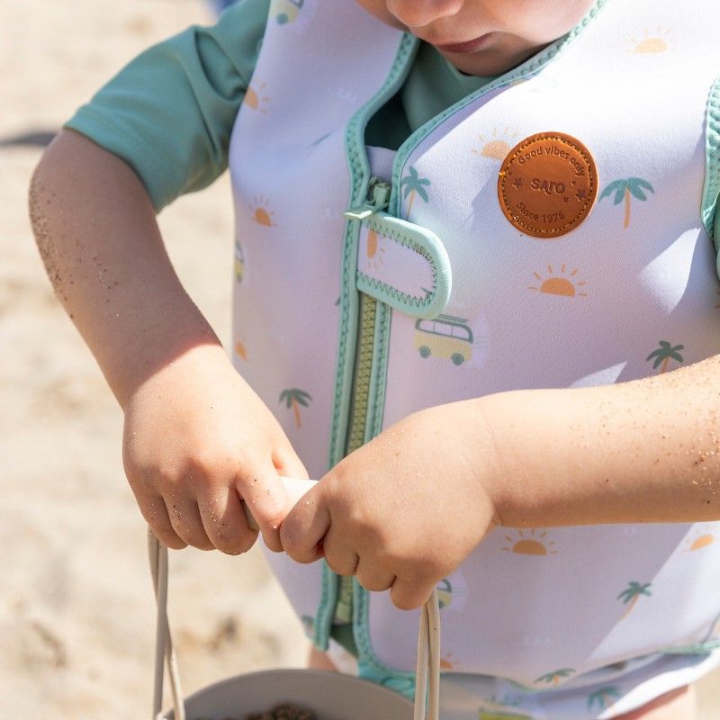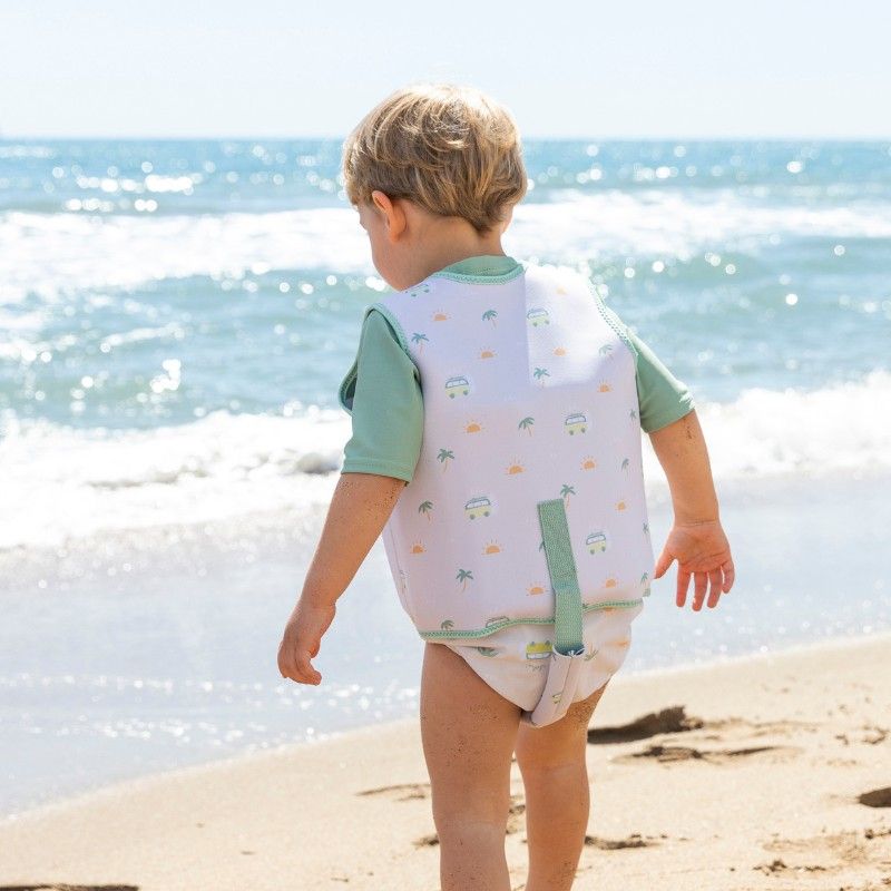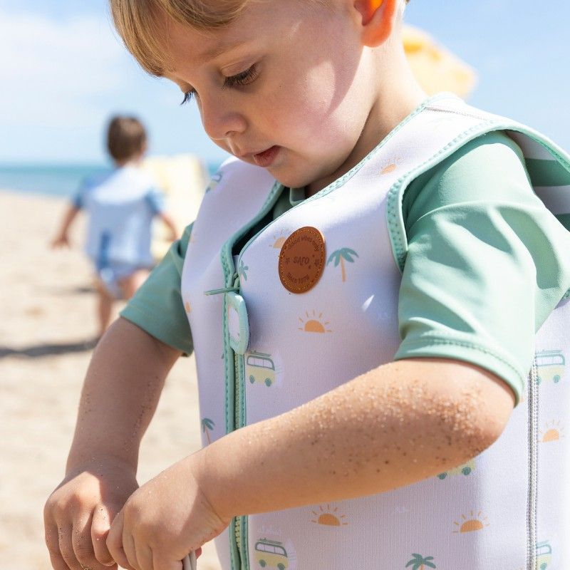 ¡Al agua patos! El chaleco flotador de Saro es el complemento perfecto para aprender a nadar de manera cómoda y segura. Dispone de 8 compartimentos con 3 piezas de flotación en cada uno, que podrán quitarse poco a poco según mejore la capacidad de flotar sin ayudas de tu peque, disfrutando de la playa o la piscina y garantizando su seguridad.