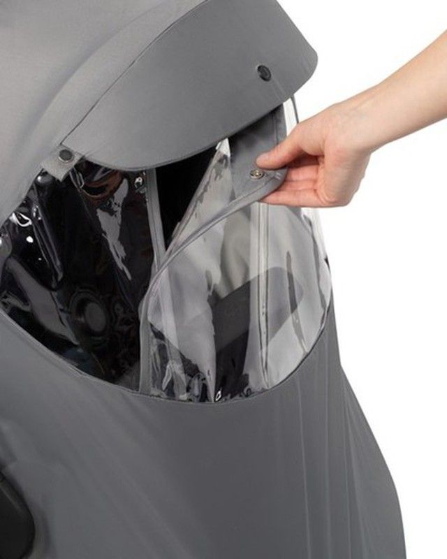 La funda protectora de lluvia Joolz Hub2 se adapta perfectamente a la sillita para asegurarse de que no existe el riesgo de exponer al peque a la lluvia, nieve o ventisca del exterior.
