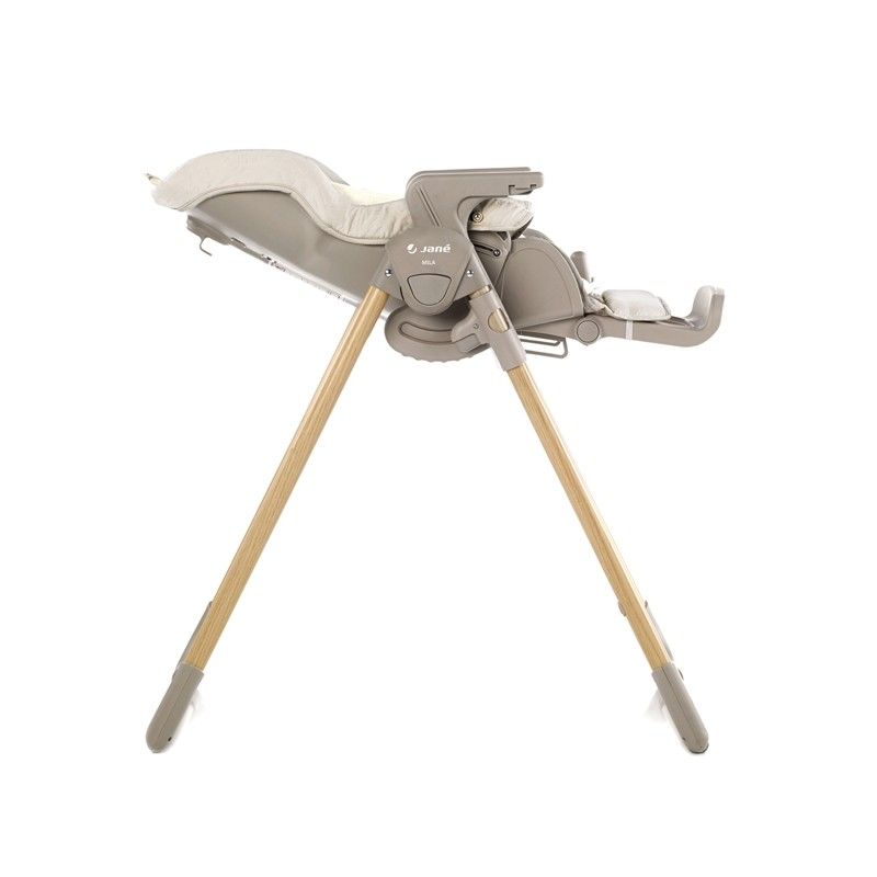 La trona de Jané Mila se puede usar desde el nacimiento gracias a sus posiciones de reclinado. Estas permiten que quede reclinado el respaldo en una posición optima para que pueda descansar un bebé.